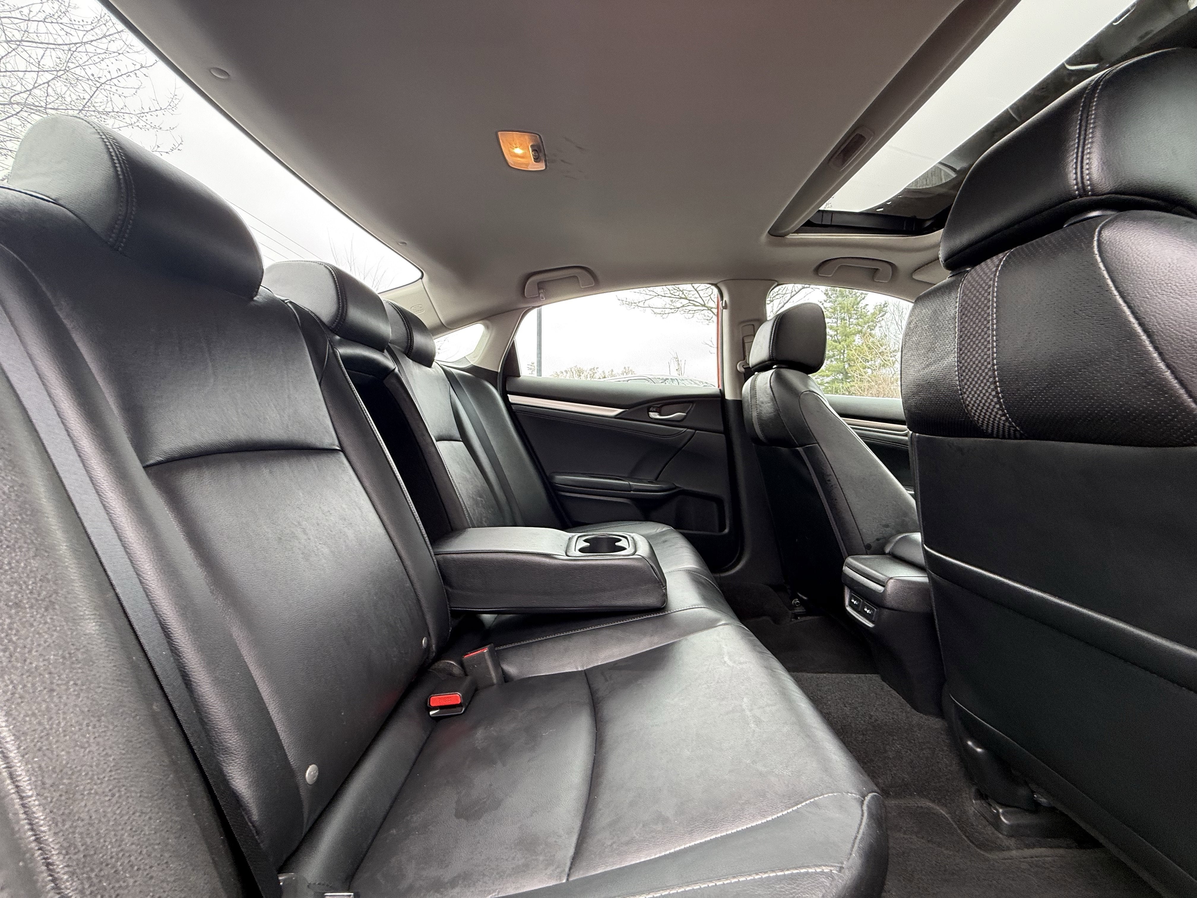 2020 Honda Civic Touring Leather. Romeo Toyota proudly presents this 2020 Honda Civic with Leather, 10 Speakers, 4-Wheel Disc Brakes, ABS brakes, Adaptive Cruise Control: Adaptive Cruise Control (ACC) with Low-Speed Follow, Air Conditioning, Alloy wheels, AM/FM radio: SiriusXM, Apple CarPlay/Android Auto, Auto High-beam Headlights, Auto-dimming Rear-View mirror, Automatic temperature control, Brake assist, Bumpers: body-color, Compass, Delay-off headlights, Driver door bin, Driver vanity mirror, Dual front impact airbags, Dual front side impact airbags, Electronic Stability Control, Emergency communication system: HondaLink, Exterior Parking Camera Rear, Forward collision: Collision Mitigation Braking System (CMBS) + FCW mitigation, Four wheel independent suspension, Front anti-roll bar, Front Bucket Seats, Front Center Armrest, Front dual zone A/C, Front fog lights, Front reading lights, Fully automatic headlights, Garage door transmitter: HomeLink, Heated door mirrors, Heated Front Bucket Seats, Heated front seats, Heated rear seats, Illuminated entry, Lane departure: Lane Keeping Assist System (LKAS) active, Leather Seat Trim, Leather Shift Knob, Low tire pressure warning, Navigation system: Honda Satellite-Linked Navigation System, Occupant sensing airbag, Outside temperature display, Overhead airbag, Overhead console, Panic alarm, Passenger door bin, Passenger vanity mirror, Power door mirrors, Power driver seat, Power moonroof, Power passenger seat, Power steering, Power windows, Radio data system, Radio: 450-Watt AM/FM/HD/SiriusXM Audio System, Rain sensing wipers, Rear anti-roll bar, Rear seat center armrest, Rear window defroster, Remote keyless entry, Security system, Speed control, Speed-sensing steering, Speed-Sensitive Wipers, Split folding rear seat, Spoiler, Steering wheel mounted audio controls, Tachometer, Telescoping steering wheel, Tilt steering wheel, Traction control, Trip computer, Turn signal indicator mirrors, Variably intermittent wipers, and Wheels: 18 Alloy w/Gloss Shark Gray Inserts.