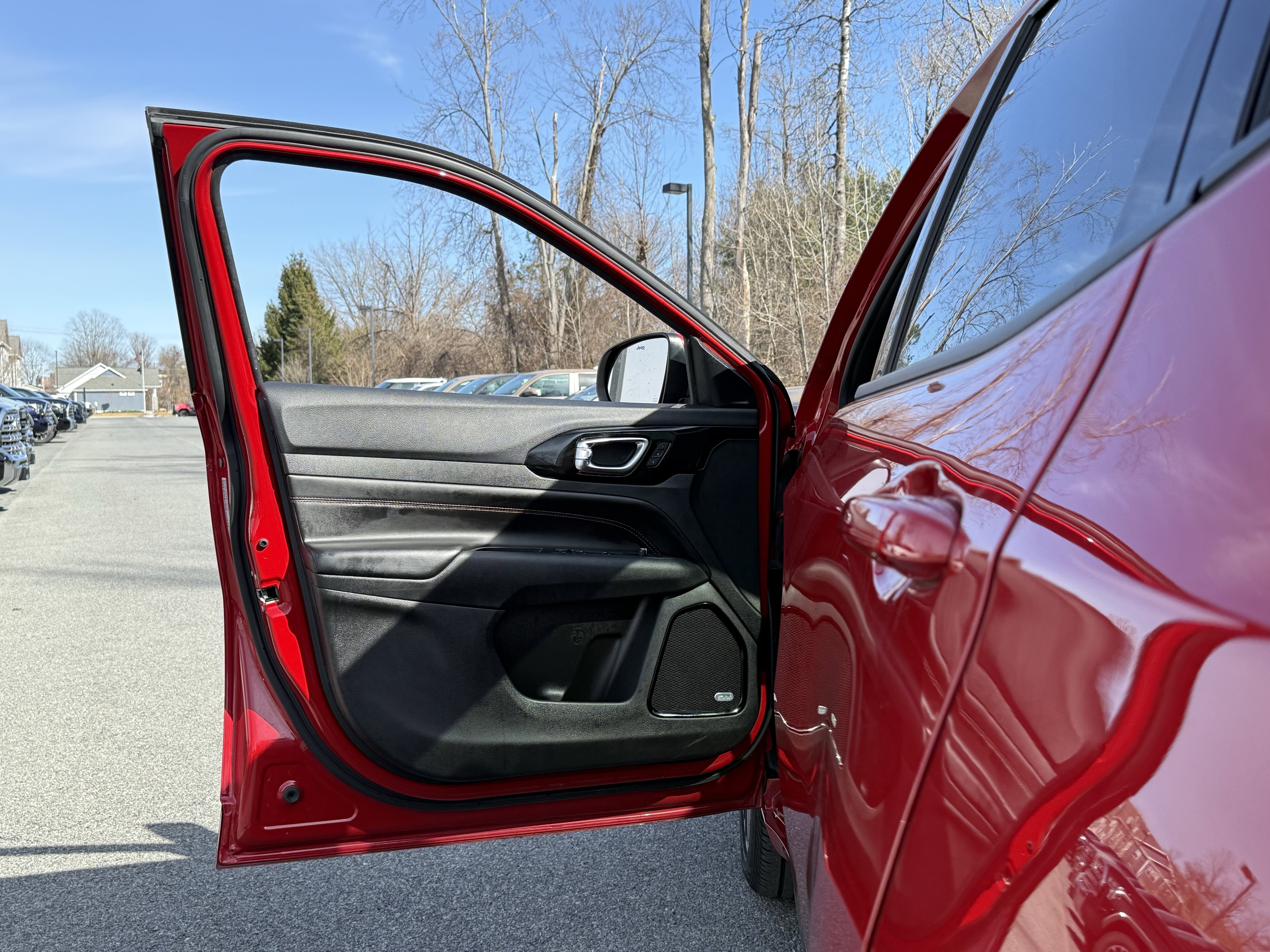 The Compass Limited Red Edition's stunning exterior is further enhanced by its bold Red Redline Pearlcoat paint, complemented by sleek body-color accents and premium LED lighting. Step inside and you'll be greeted by a spacious, well-appointed cabin that offers unparalleled comfort and convenience.